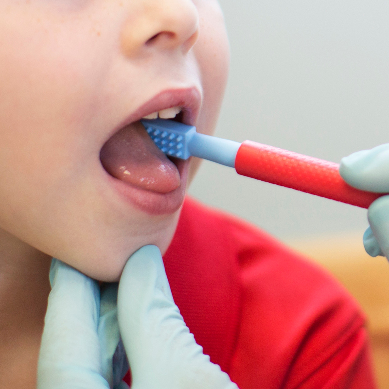 Z-Vibe® elegantajam, inovatīvajam dizainam ir viegls, plastmasas rokturis ar maigiem izciļņiem ap tā apkārtmēru, lai nodrošinātu neslīdošu satvērienu. Šo tekstūru var arī notīrīt gar vaigiem, rokām, plaukstām utt., lai iegūtu papildu taustes ievadi. Rokturim vienā galā ir zils zondes gals, bet otrā galā – pārslēdzams gals. Izmantojiet zondes galu mutes dobuma motorikas novērtēšanai un attīstībai.